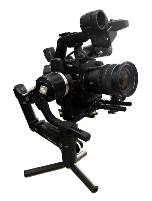 Stabiele dynamische opnames maak je met een Gimbal. Hiervoor maak ik gebruik van een Zihyun Crane 3 S. Dit is een gimbal die gebouwd is om zware camera's te kunnen dragen. Ik kan hier dan ook gerust camera en randapparatuur op plaatsen. Na een dagje opnames maken met dit beest heb je geen Work-out meer nodig ;)